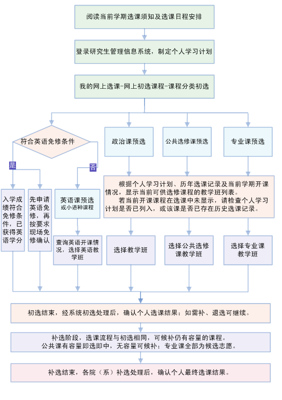 各位研究生请注意,各阶段选课结束后,请务必上网查询确认个人选课结果,如有问题请联系研究生培养处或相关开课学院(系)。
