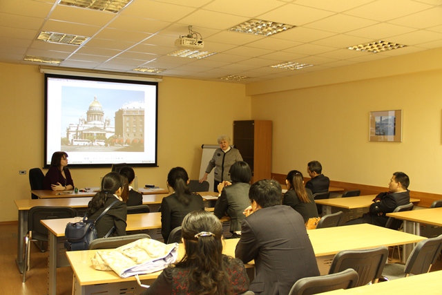 此后,交流团听取了由圣彼得堡国立技术大学塔基亚娜伊万诺娃教授带来的以“19世纪俄罗斯文化”为题的英文讲座。讲座分别从建筑、文学、音乐等方面向同学们全方面展示了19世纪俄罗斯的文化艺术成果,令同学们深刻而直观地感受到俄罗斯古老艺术文化的魅力。讲座期间,同学们也就各自感兴趣的话题积极与教授进行了交流互动,收益颇丰。