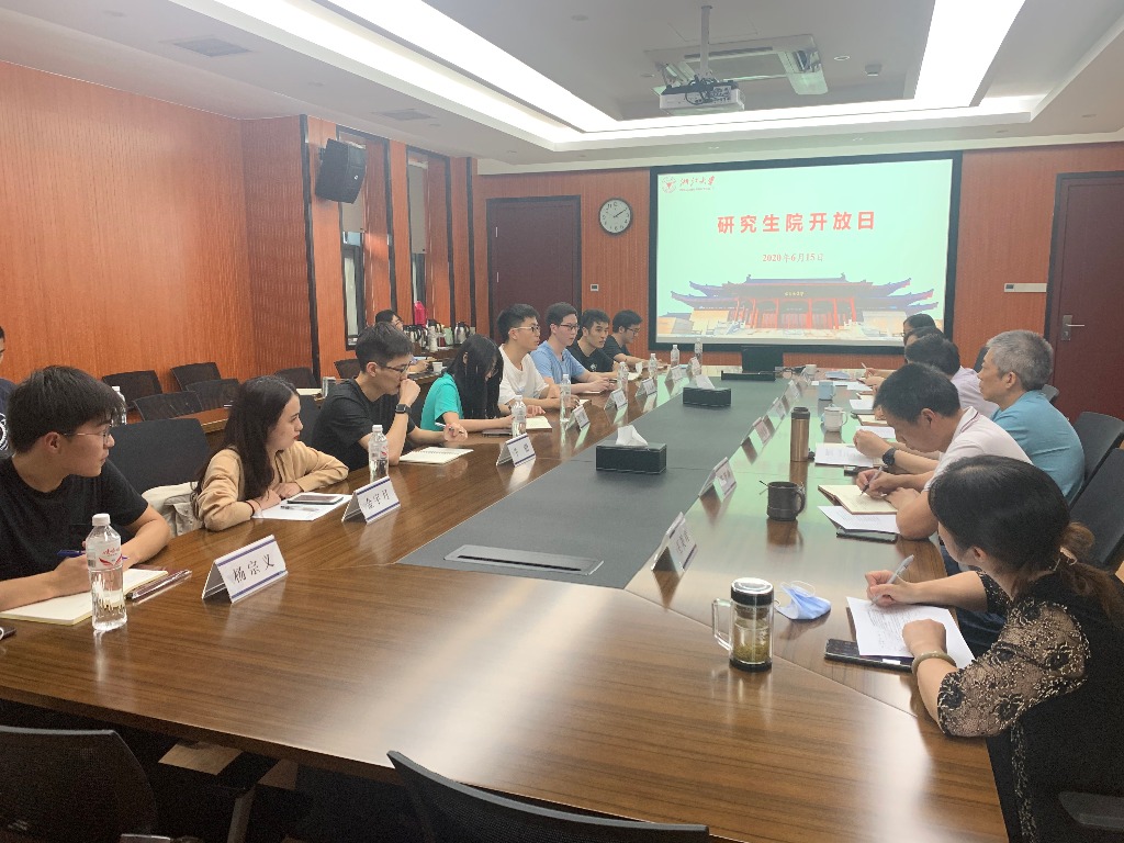 2020年6月15日下午,第三期“研究生院开放日”活动在紫金港校区研究生教育综合楼901会议室顺利举行,研究生院中层领导班子与8名来自不同学科的硕士、博士研究生同学就疫情期间校园学习生活中出现的问题进行了座谈交流。会议由研究生院常务副院长叶恭银主持。