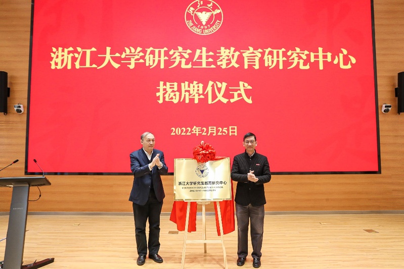 2022年2月25日,浙江大学研究生教育研究中心揭牌仪式在研究生教育综合楼101会议室举行。中国科学院院士、中国学位与研究生教育学会会长、浙江大学原校长杨卫,校党委常委、副校长、中心主任严建华共同为研究中心揭牌。中国学位与研究生教育学会副会长兼学术委员会主任、浙江大学发展委员会副主席陈子辰,原研究生院常务副院长、中心顾问王家平出席仪式。仪式由研究生院常务副院长夏群科主持。